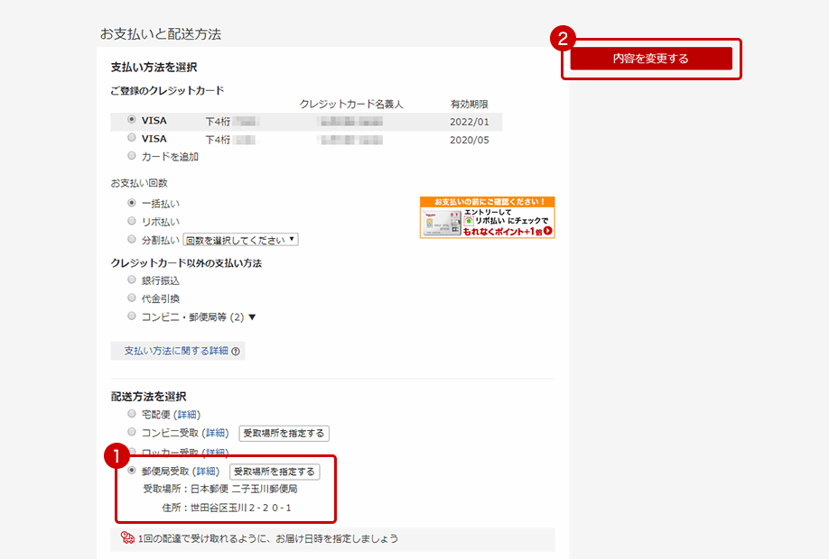 お届け日時を変更する 日本郵便